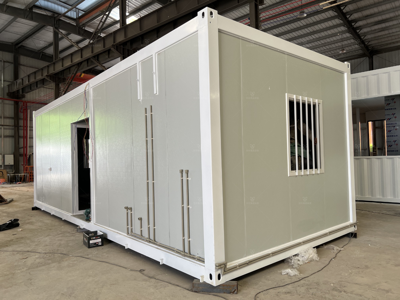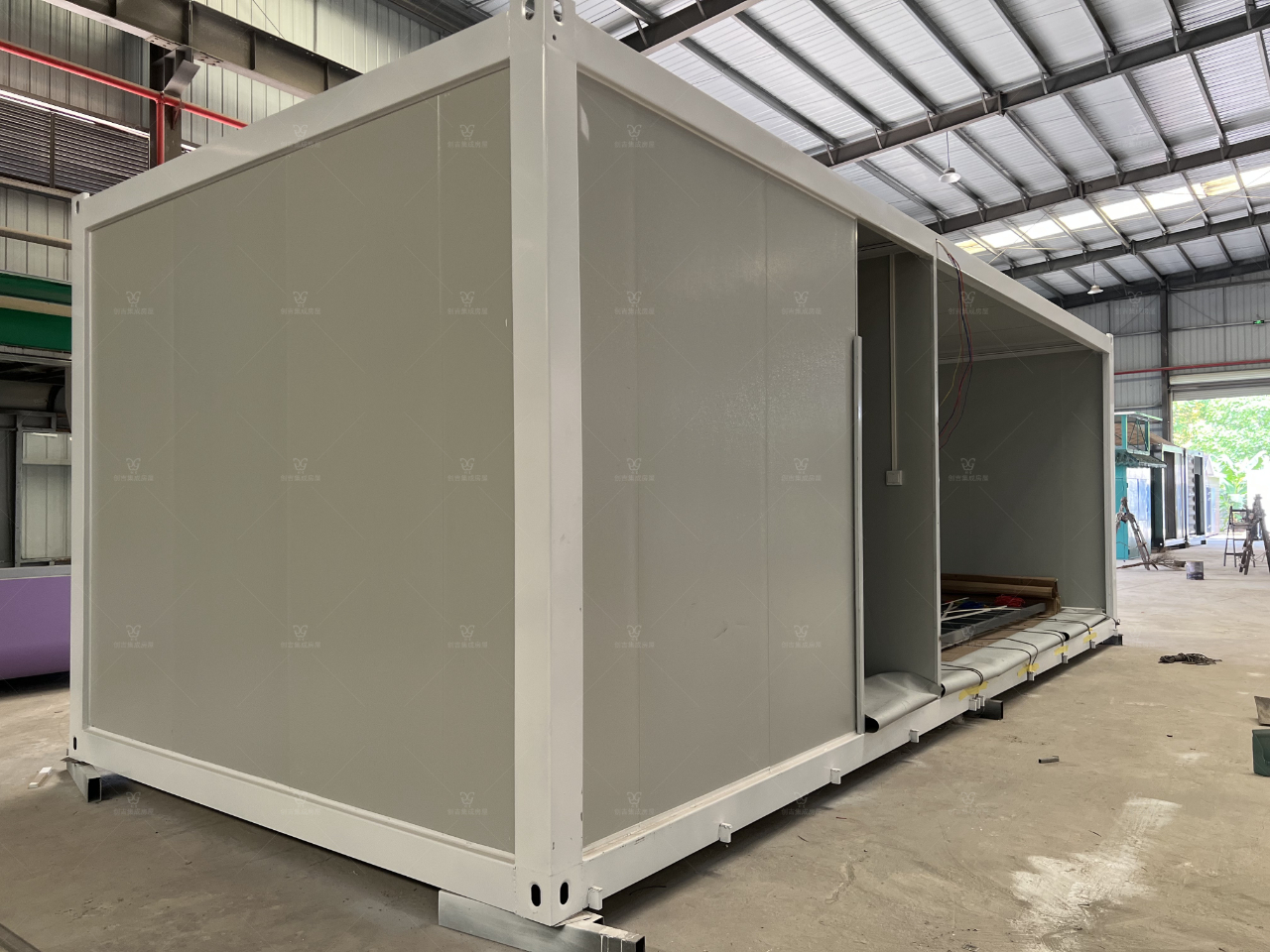摒弃传统集装箱房的单调冰冷,这款三室一厅的集装箱房在空间规划上尽显巧思,采用了2个3.5米乘8米集装箱为主体,搭配1.2米乘8米的专属过道拼接而成,既保证了三室一厅的规整格局,又让空间动线流畅不局促,更值得一提的是它的高性价比配置,外墙采用阻燃隔热夹芯板,不仅隔热保温,安全耐用,平整光滑的墙板还无需额外装饰内墙,开箱即可直接投入使用,大幅度节省了装修成本与时间,内部配套拉满,卫生间花洒马桶卫浴设施一应配齐,水电系统也调试到位,真正实现。拎包即住。